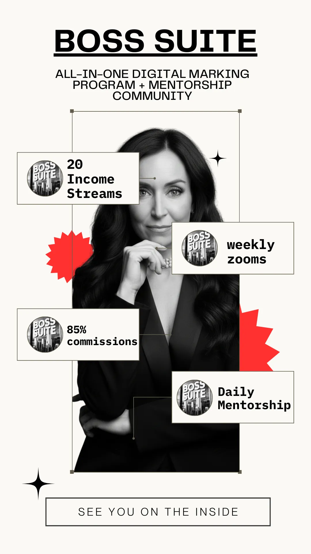 Boss Suite™ brings everything together — systems, offers, and support — so you can build and grow from one simple hub.